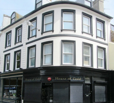 Shop on prominent corner location. Three storeys plus attic, Three bays on Bond Street plus two bays in Conway Street . Curved corner shopfront with deep moulded fascia. Two entrances, one each in Bond Street and Conway Street. Step up in Bond Street,