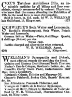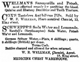 He was followed by chemist and druggist William Richard Wellman (1827- ), who was living there in 1851, listed in the census as head of household at the age of 23, with his older sisters Elizabeth Ann and Susannah, and his 77-year-old grandmother Susanne Le Gallais, nee Sorel.