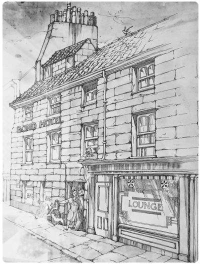 18th century town house, or warehouse building, significantly older than the other buildings in Bond Street. It appears to have become the Bond Hotel when C Bisson took over the building between 1890 and 1895. Previously A de Carteret ran the Birmingham Hotel at Nos 14 and 15