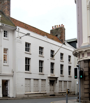 The five-bay, three-storey Georgian house fronting Hill Street was built by Jean Perrochon in 1748 on land purchased from Moyse Corbet in 1746, and is a notable example of a town house of the period. Shown on the Richmond Map of 1795.