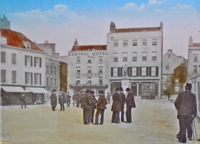 Former town house owned in the 18th and early 19th century by the Hemery family and home to one of Jersey's 19th century newspapers. The building was given to the Jersey Chamber of Commerce in 1821 and became its headquarters, although it retained accommodation at 6 Royal Square in the 1880s. [1]Part of the building was rented by the printing and newspaper - Chronique de Jersey - publishing business of the Perrot family, and rooms on the upper floors were rented as living accommodation. There were also a drapery here in 1837. Pictures on this page show that the Perrot business was variously named Perrotl and Ahier's Printing Establishment, Perrot's Printing Establishment and Perrot Brothers Printing Establishment. It is believed that this is the correct sequence