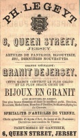 Philip Le Geyt was described as 'retired Jeweller' in the 1901 census. In the 1881 census the family were at 6 Queen Street and he and his wife lived at Khartoum, St Saviour from 1891. In 1901 Clarissa and her son were living at Beach Road, St Helier, Clarissa was described as a jeweller. Her husband had enlisted in the Army in 1900 and was a captain in Shropshire Light Infantry (53rd div).