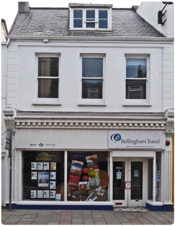 Two-storey with attic, three-bay. Slate roof with box dormer with three-pane timber window. Walls render with ashlar effect quoins. Shopfront framed to sides with fluted pilasters with pedimented, rolled and fluted capitals. Frieze between has heavy dentilled cornice.