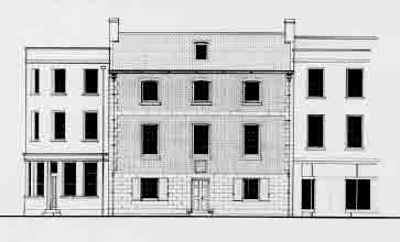 An unusually early example of a public library. Terrace on to street, three-storey, three-bay. Slate roof, single small box dormer in centre. Rendered chimneys. Cast iron gutter with lion head mouldings. Cast iron hopper head on either side. Ground floor forms a granite plinth for the upper floors which are brick detailed with burnt headers. Granite quoins and string course between first and second floors. Double doors with three panels each in centre of elevation. Stone threshold step with iron mud scrapers cut into the granite on either side.