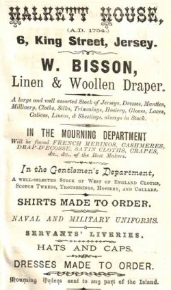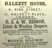 The property was shown as Halkett House in the 1861 and 1871 censuses and also in later advertising by draper W Bisson, who traded there over the turn of the 19th century. Later Jersey's Woolworth store was built on the site.
