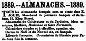 - 1889-1890 - Eugene Jouis, French newsagent and tobacconist