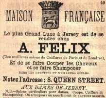 The Audoin family are something of a mystery. There are very few records relating to them. It is known that Aurelie died in 1877, and there is also a burial recorded for a Leonie Leonarde Audoin in 1870. Felix and Aurelie were married in St Helier, probably in a Catholic church, in about 1866-67. They do not appear to have had any children. Although there is no shortage of Felix and Guillaume Audoins in French records, we have not been able to find any who appear to have been related, and we have not found an Armand Audoin.