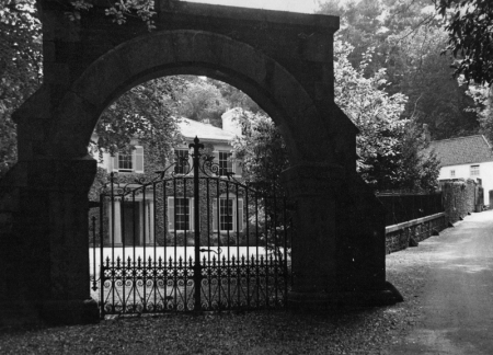 To the south on the opposite side of the lane a further large round-headed granite archway [8] with iron gates set into the wall gives access to the frontyard.