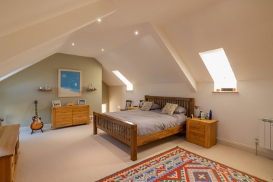 The 1813 stone is likely to indicate the date of the house as it is now. At some time the roof was slightly raised and thatch replaced by slate, perhaps in 1869, a date found on a staircase.