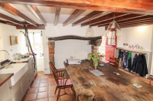 The entry for this property refers to the datestones, window shapes and the cider trough and press in a ground floor room.