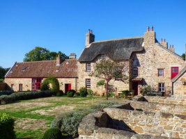 There are squared granite chimneys with dripstones and areas of thatch surviving in situ. Adjoining is a two-storey pressoir, circa 1739, with a single storey outshot to the rear which extends to behind the main house. The pressoir contains a rare 18th century wooden twin-screw cider press.