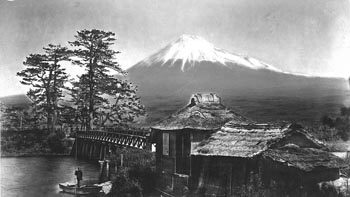 In the autumn of 1873, a couple of friends asked me to join them on a trip to the neighbourhood of Fujiyama; I consented but I must say that in the interval before we started, sitting before a fire and shivering in our dining room in Yokohama, I felt much inclined to back out. However, on the trip I went and it proved a most enjoyable one. We started in rickshaws along the main road or “Toknido” to Odawarra from whence we had to walk up a mountain path to “Meanoshita” which was to be our headquarters. It was a beautiful walk through well-wooded mountain scenery but was rather a trial for me as I was not in good condition; however, Meanoshita was reached at last and a meal and rest put me alright. The Tea house we stopped at was situated in the Bolearni district which surrounds Fujiyama and there were hot springs and other evidences of volcanic agency in the immediate neighbourhood. The water from a hot spring about half a mile away and was brought to us by hollow bamboo pipes and filled a number of baths into which kept constantly running and overflowing; the water was so hot that I could that I could not get into my bath in the morning until a couple of buckets of cold water had been poured in, then I went on the balcony and dressed while there was a sharp frost covering the ground with white; in the keen mountain air I did not feel the cold nearly so much as sitting before the fire in Yokohama.