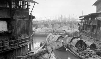 We had another blow while in Shanghai. We went next morning; the wind having subsided but the mud in the Yangtze had been so stirred up by the storm that we were steaming through what was now more like liquid mud than water, and the engine tubes got so choked up that we gradually slowed down to about 4 knots, barely stemming the tide and we had to anchor for the night.