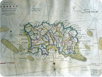 But in the midst of these controversies he was busy making a survey of the island, and drawing the most accurate map that yet been produced. It marks the frontiers not only of the parishes but the vingtaines, giving the number of houses in each. It names not only the bays, but the rocks and shoals round the coast. He presented this to James II on his accession in 1685 together with a manuscript Survey of Island of Jersey, Being an account of the Situation, Soyle, habitants, Fortification, Landing-places, Rocks, and Tides about the same.