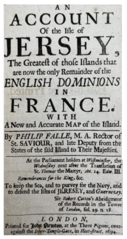 This is precisely the feeling, which anyone will experience, on rising from the perusal of the Rev Philip Falle, the Historian of Jersey. There is something in his honesty and patriotism, which cannot fail to arrest the attention of the most ordinary reader and the high respect and deference in which his memory has ever been held by his countrymen, are further calculated to increase that curiosity.
