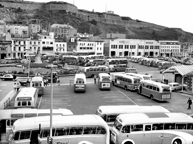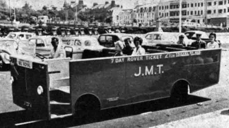 All the JMT fleet was taken out of their garage on 29 July 1964 and spread around the Weighbridge. The reason: A Battle of Flowers float was being built and decorated inside