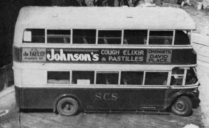 Advert for the open-top bus affectionately known as the 'toast rack'