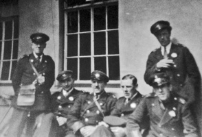 Favourite Bus Service fleet outside the Masonic Temple in Stopford Road in 1935
