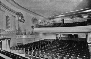It had a 38-foot wide proscenium, a stage 31 feet deep, upon which occasional stage shows were held, and there were six dressing rooms. The cinema was equipped with a Compton 3Manual/8Rank theatre organ with a Patent Solo Cello unit and an illuminated console, which was opened by Edward O'Henry. The cinema also boasted a cafe/restaurant.