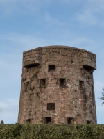 This tower in the south-east corner of the island at La Rocque is sometimes known as Grouville No 0. It was completed after the five towers stretching north beyond it had been numbered Grouville 1-5. The closest tower to the point where the French invaded in January 1781, Platte Rocque was commissioned in the wake of the Battle of Jersey. It is now privately owned. The house which stands next to it on the shoreline is also called Platte Rocque