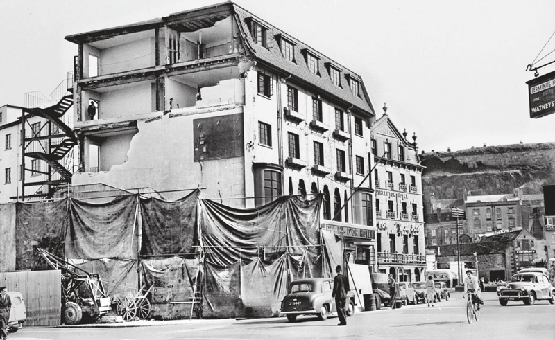 Work under way in 1956 to extend the hotel after the acquisition of the coal store, fortified during the Occupation, on the corner with Conway Street