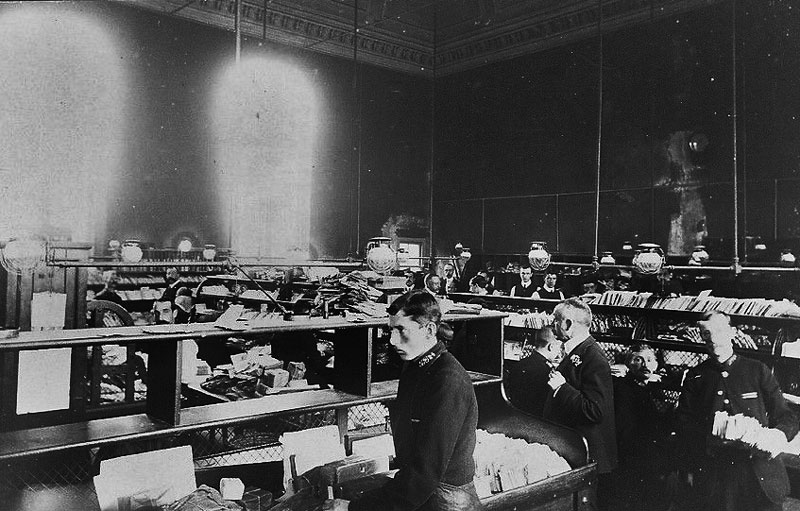 A gas lit sorting office in 1910