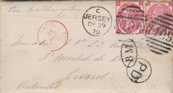 A letter posted from Jersey to France in 1870