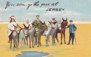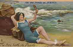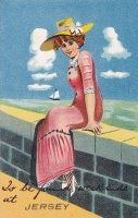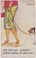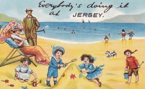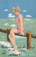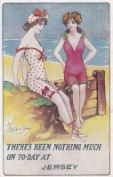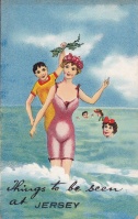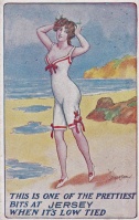 Traditional 'saucy' seaside postcards were also produced for Jersey, but these were part of nationwide issues, overprinted for sale in Jersey and many other seaside resorts around Britain.