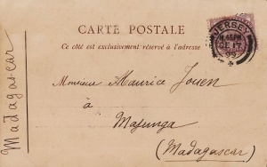 Rene Jouan, who would eventually command a French Navy submarine, spent some time in Jersey in the closing years of the 19th century, perhaps attending the French Navy school at Highlands, which would later become Notre Dame du Bon Secours. He sent postcards to his family in Rouen, and as far afield as Madagascar, a number of which have survived. They include a rare postcard posted on 31 December 1899, the last day of the century.