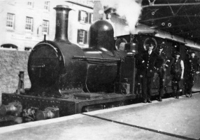 Locomotive St Helier's in front of Hallewell's Hotel on the Esplanade