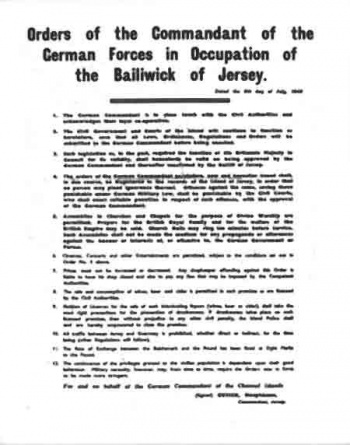 Orders of the Commandant of the German Forces in Occupation of the Bailiwick of Jersey. Dated 8 July 1940.