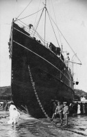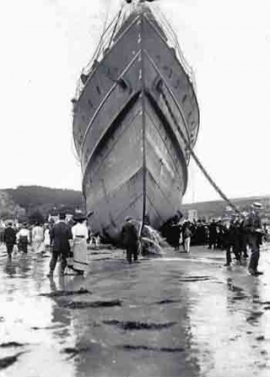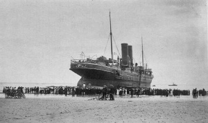 A further 20 tons of cargo were taken off the ship, which remaind stuck fast on the Kaines for eight days. The ship was a sensation for locals, who flocked to see it. Vain attempts were made for four salvage vessels to pull it clear of the rocks on high tides from 21 to 23 July, but a pinnacle of rock was penetrating the hull and making it impossible to move.