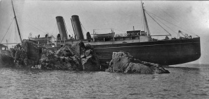 Capt Le Feuvre had miscalculated his position and maintained a speed of 17 knots despite the visibility. His crew lookout spotted swirling water which was the tell-tale sign of submerged rocks, but he turned too late towards open sea and the ship struck the rocks and stayed there, 200 of its 280 feet firmly stuck to the reef, and a 100 foot gash in its side.