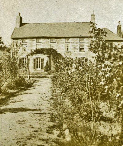 Five-bay, two-storey house with two-storey east wing, and converted farm range at roadside, now called Aubin Cottage.