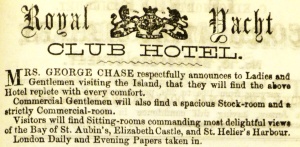 The Royal Yacht Hotel almost certainly has a better claim to be the island's oldest than its near namesake the Royal Hotel, because it was probably founded in the 1820s. A 1832 advertisement below calls it the Royal Yacht Club and London Hotel, and the following year a guide book referred to it as 'The London and Yacht Hotel'. Ten years later it was known briefly as 'Hotel de Paris', before it became the 'Royal Yacht Club Hotel'. The Royal Hotel, however, can only trace its origins back to a 'probable' 1842.