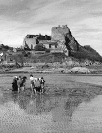 Sand eeling by day in the shadow of Mont Orgueil Castle