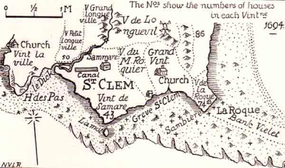 The St Clement family, of some importance, acquired the remaining half carucate of du Hommet which was known thereafter as the Fief de Crapedoit. Ralph, the Seigneur in 1331, "accused of taking simple men of his own to the taverns and compelling them to pay for his food and drink more than they owed him," acknowledged the error of his ways and was fined; but it was nevertheless deemed advisable to obtain the additional sureties of Reginald de St Clement and William le Breton as pledges of future good behaviour.
