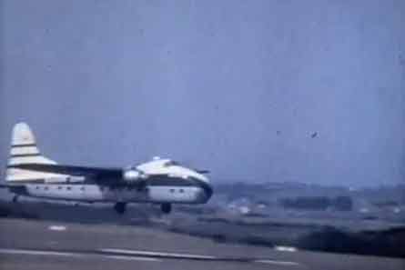 - "I well remember my first flight. The cars were driven by airline staff up a steep ramp leading to the car platform revealed behind giant doors in the aircraft's nose, and passengers were crowded into a small cabin at the rear of the aircraft. There was a thunderous noise as the engines started up and the aircraft taxied to the end of the runway, but the frightening part was to come. As the engines were revved up the aicraft began to shake violently, and then it trundled down the runway, seemingly at about walking pace, before amazingly lifting into the air. Only minutes later we landed in Cherbourg and were on the road and heading south past St Malo long before we would have arrived on a sea service leaving Jersey at the same time."