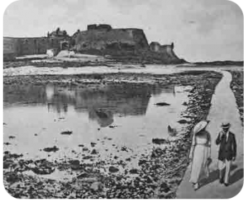 Dumaresq of Saumares, writing in 1668, states that in olden times the intervening space between the castle and the shore was meadowland, on which cattle could be seen grazing, but nowadays the only walkable connection between the islet and the mainland is the causeway which, open at low tide, gradually gets covered as the tide rises. And as we look towards the castle, our memories recall incidents of by-gone days, and we can understand what a wonderful story those walls could tell.