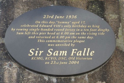 Samuel Falle was educated at Victoria College. He served in the Royal Navy 1937–48 and was awarded the Distinguished Service Cross "for gallantry in the face of overwhelming odds whilst serving in HMS Encounter during her last action in the Java Sea on 1 March 1942".