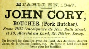 1887 advert from L'Almanach de la Gazette de Jersey