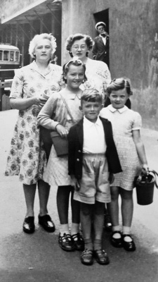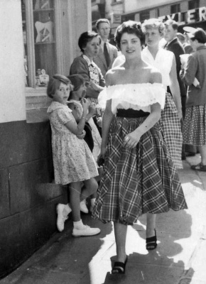 A feature of Snow Hill in the years either side of World War 2 was the presence of street photographers. Strategically located next to the Snow Hill bus terminus for eastern routes, at the end of Colomberie, a route for many holidaymakers from their hotels at the other end of the street, in St Saviour's Road and at Havre des Pas, it was an ideal place for itinerant photographers to snap pictures of locals as well as visitors. Many of these images have been retained in family collections and, in March 2021, a variety were posted on the Jersey Temps Passe Facebook group. We have reproduced a selection here. The first two pictures show the junction of Colomberie, Hill Street, La Motte Street and Queen Street in 1956, about the time many of these photographs would have been taken