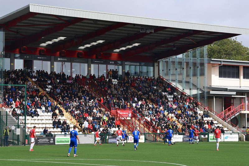 When the States took over the site they built a modern grandstand, realigned the football pitch and landscaped the grounds with new parking areas, at the same time as creating a gyratory traffic system to the north of the complex.