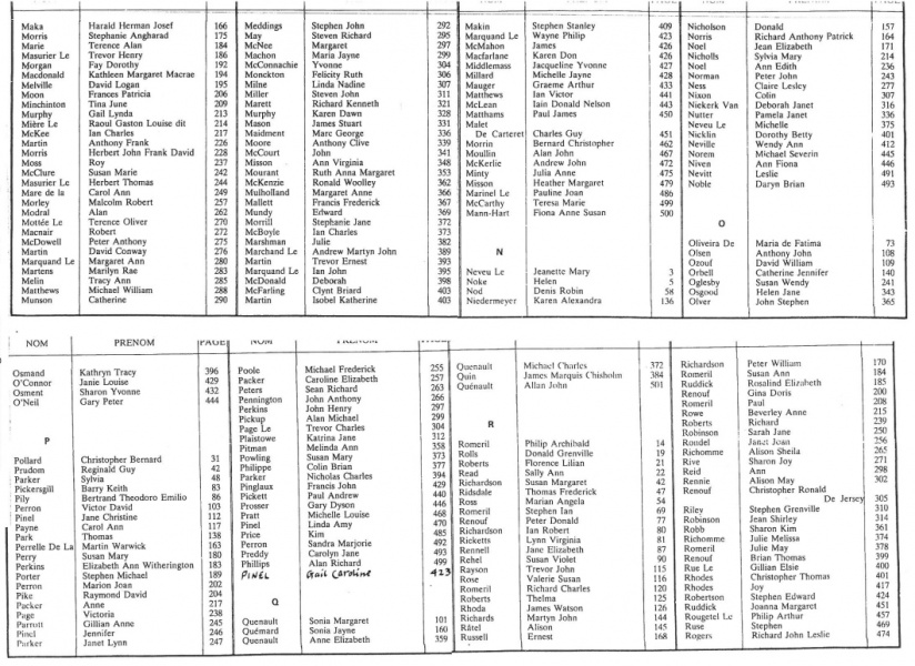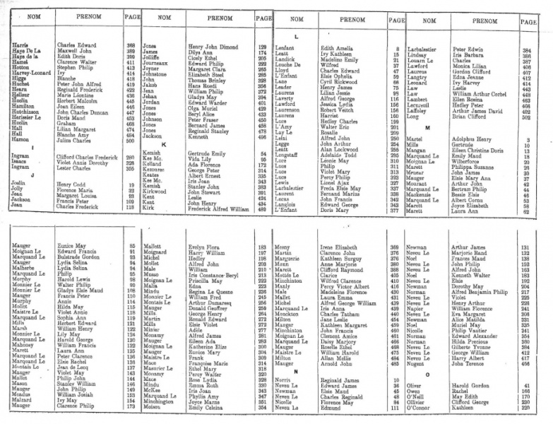 St Brelade marriage records to 1940 are included in our database of church and civil records. In 2023 we added this page of images of the indexes to the records up to 2002. These records will eventually be digitised and added to our database, but are presented here as images of the pages in the Registrar's index.