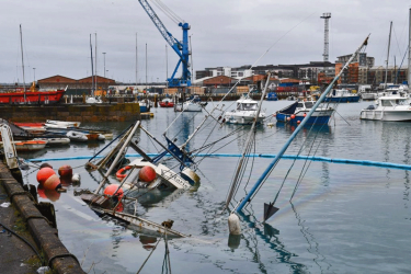 As the water fell the area where the fishing boats were moored was completely dry