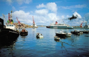 Cars being craned on to a cargo vessel for the journey to St Malo in the early 1970s. Their owners caught up with them later travelling on a Condor hydrofoil