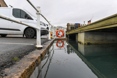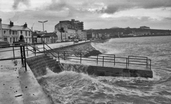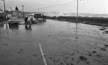 The high tide floods over the harbour edge in 1962
