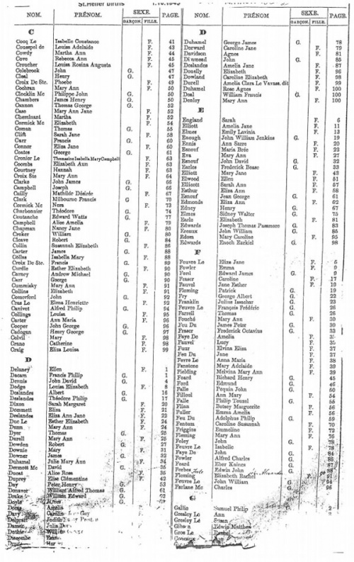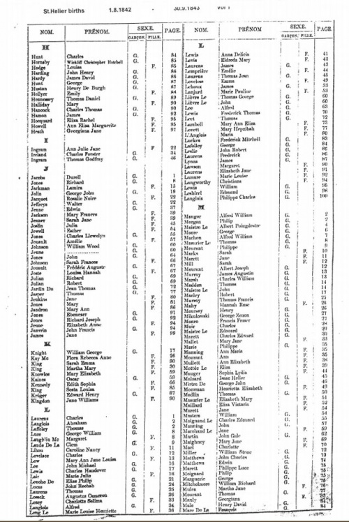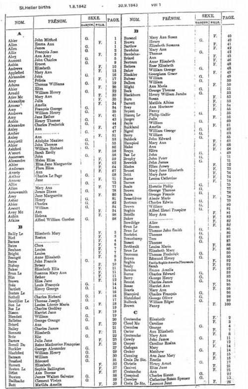 This page contains images of the Registrar's indexes of births registered in St Helier from August 1842 to November 1844