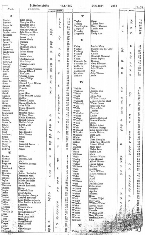 A typical page from the Superintendent Registrar's index of St Helier birth registrations