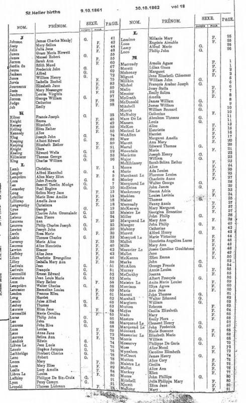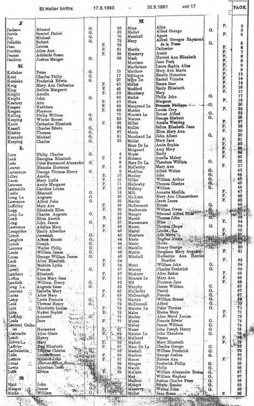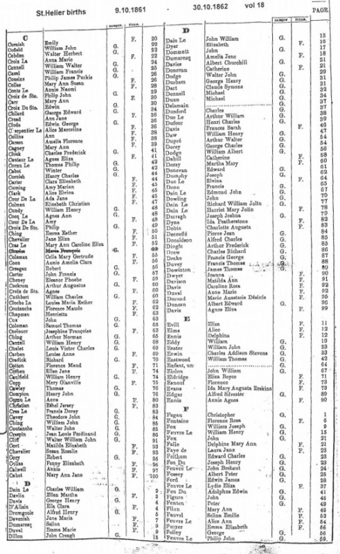 St Helier births 1860-1862